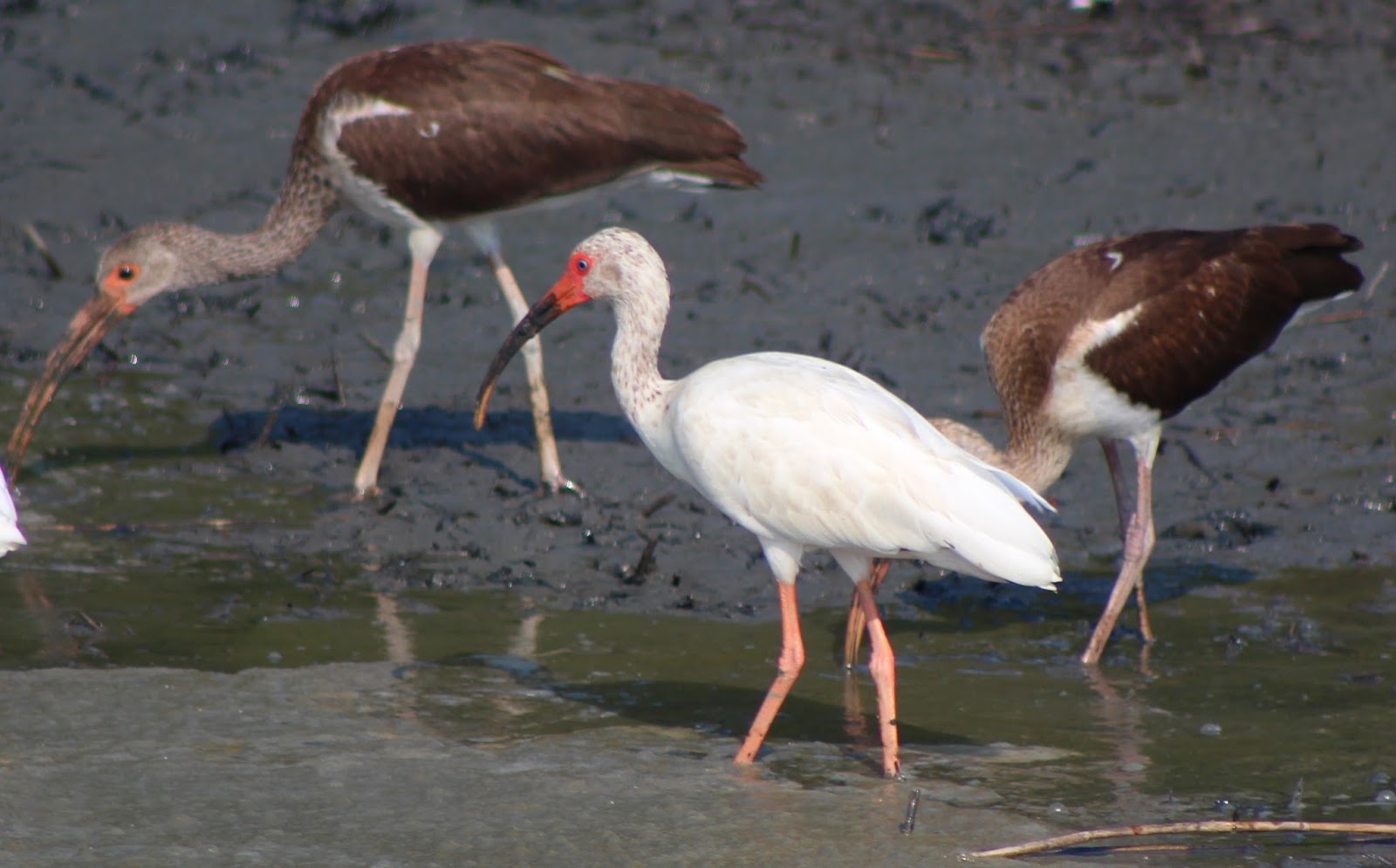| Roseate Spoonbill and Wood Storks (both threatened birds, the spoonbill is very rare in SC - too far north) |